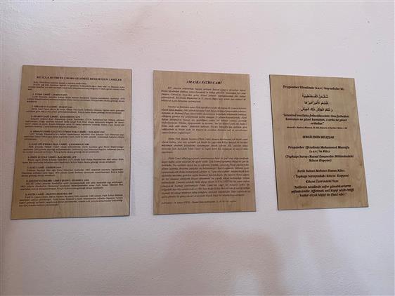 İlçe Müftülülüğümüz tarafından, caminin tarihi dokusuna uygun olarak Peygamber Efendimizin (S.A.V.) in Topkapı Sarayı Kutsal Emanetler Bölümünde bulunan Seyf-i Şerifinin bir kopyası ve Fatih Sultan Mehmet Hanın Topkapı Sarayında bulunan savaş kılıcının bir kopyası ziyaretçiler için sergileniyor.