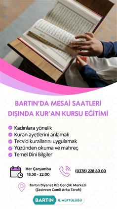 BARTIN’DA MESAİ SAATLERİ DIŞINDA EĞİTİM VERİLEN KUR’AN KURSU