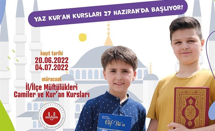 Her sene okulların tatil olduğu dönemde milyonlarca çocuk ve gencin Kur'an-ı Kerim başta olmak üzere İslam'ın temel inanç esaslarını, ibadetleri ve Hz. Peygamber'in hayatını öğrendiği "Yaz Kur'an Kursları" bu yıl 27 Haziran'da başlayacak.